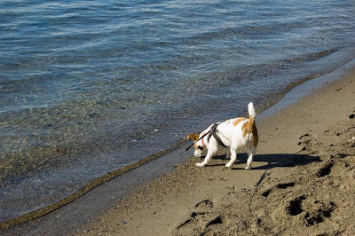Mia blev modigare och modigare och begav sig ut i vattnet för att jaga...pinne ;) |